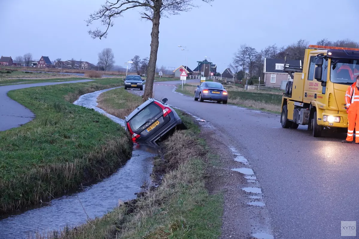 OOSTZAAN - Een auto is op de Oostzanerrijweg is Oostzaan in het water beland.