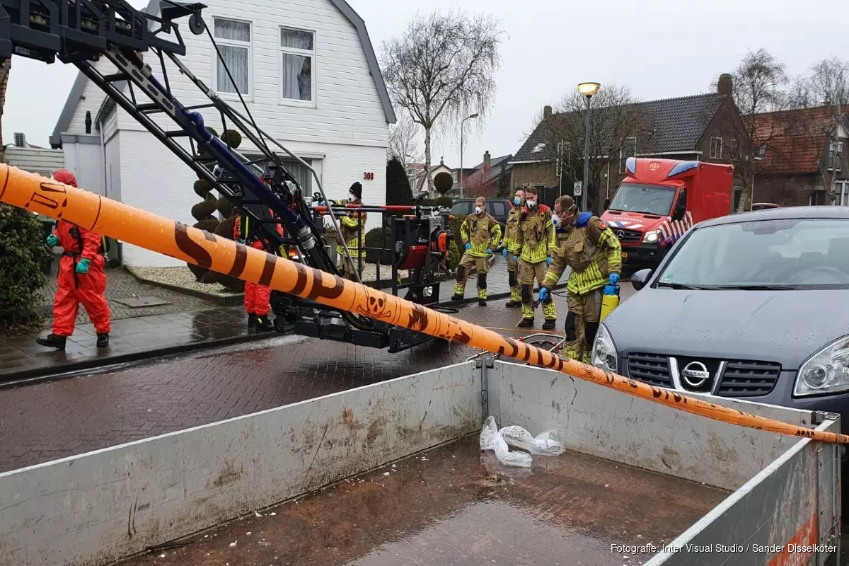 De brandweer heeft de weg afgezet onder het protocol "gevaarlijke stoffen." Wat er precies aan de hand is, is nog niet duidelijk.