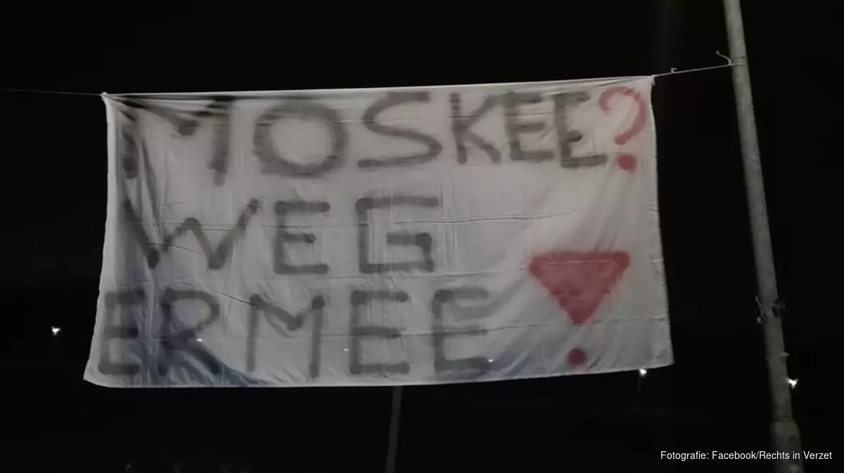 ASSENDELFT - De actiegroep Rechts in Verzet heeft vannacht spandoeken en protestborden geplaatst tegen de komst van een moskee aan de Omweg in Assendelft.