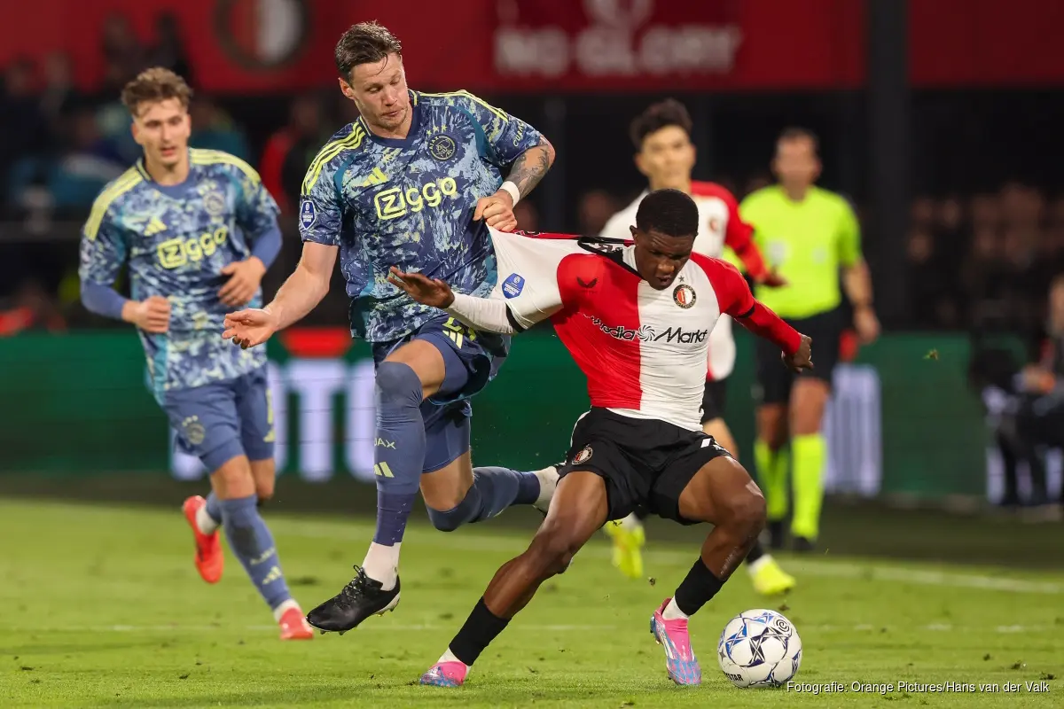 ROTTERDAM - Ajax heeft de derde plaats in de Eredivisie overgenomen van Feyenoord na een 0-2 overwinning in "De Klassieker" in De Kuip. De Amsterdammers toonden zich slagvaardig in het eerste half uur en dat bleek voldoende voor de zege.