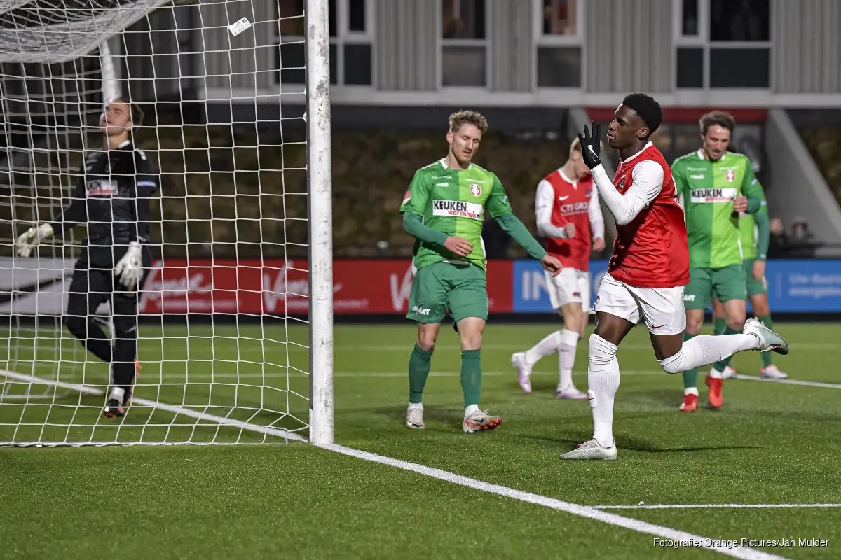 Kort na de rust maakte Poku ook zijn tweede, na een splijtende pass van Wouter Goes. Shiloh 't Zand wist de Dordtse eer te redden, maar ook het slotakkoord was voor Poku die zich met drie goals tot man van de wedstrijd kroonde.